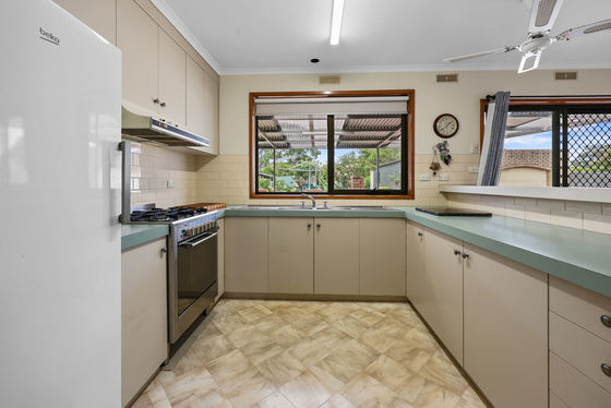 The tidy kitchen is well appointed with a freestanding gas oven, ample built-in storage and neutral tones that create a light, welcoming feel. This living space opens to a cosy living room/casual dining space with outdoor access to the impressive undercover area and gardens.