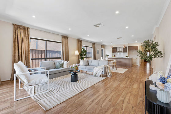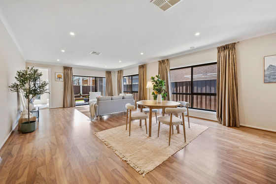 Set within the thriving and family-oriented suburb of Truganina, 15 Beatty Avenue presents a refined opportunity to secure a beautifully designed residence that seamlessly blends modern sophistication with everyday comfort. Thoughtfully crafted to accommodate the needs of growing families, this stylish four-bedroom home offers generous proportions, quality finishes and an inviting indoor-outdoor lifestyle. From the moment you step inside, you are welcomed by soaring high ceilings and expansive open-plan living, creating a bright and airy ambience throughout the home. At its heart lies a contemporary gourmet kitchen, elegantly appointed with 40mm stone benchtops, sleek cabinetry, stainless steel appliances and a tiled splashback, providing both functionality and style for daily living and entertaining. The seamless transition from the main living area to the covered alfresco allows for relaxed indoor-outdoor entertaining, while the landscaped backyard provides a private and low-maintenance setting for families to enjoy. With spacious bedrooms, modern comforts and a convenient location, this residence offers an exceptional lifestyle opportunity. ________________________________________ The B.est • Four generously sized bedrooms, all fitted with soft underfoot carpets • Private master retreat complete with a generous ensuite showcasing his and hers dual vanity basins • Centrally located main bathroom servicing the remaining bedrooms • Expansive open-plan living and dining area complemented by soaring high ceilings and abundant natural light • Stylish gourmet kitchen featuring 40mm stone benchtops, stainless steel appliances and a tiled splashback • Seamless indoor-outdoor flow to a covered alfresco area, perfect for entertaining year-round • Spacious landscaped backyard ideal for family gatherings, children's play and outdoor relaxation ________________________________________ The R.est • Stylish hybrid flooring throughout the living areas • Downlights throughout enhancing the modern interior • Neutral colour palette to complement any décor style • Low-maintenance, fully enclosed backyard suitable for children and pets • Double car garage with secure parking • Evaporative cooling and ducted heating ensuring year-round comfort • Security cameras installed for added peace of mind • Fully landscaped front and rear yards • Conveniently located within walking distance to Truganina P-9 College • Close to shopping centres, parks, medical facilities and public transport ________________________________________ Summary Combining contemporary style, thoughtful design and everyday practicality, this impressive home offers a superb lifestyle in one of Melbourne's most rapidly growing suburbs. Whether you are a growing family, first-home buyer or astute investor, 15 Beatty Avenue, Truganina delivers a residence where comfort, convenience and modern living come together beautifully. ________________________________________ Disclaimer: Note: Information contained on any marketing material, website and all other portals should not be relied upon. You should make your own enquiries and seek your own independent advice in relation to any property advertised. Physical inspections are always recommended prior to any purchase.