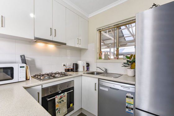• Compact kitchen/dine and lounge with stainless steel gas cooktop, elec. oven and dishwasher