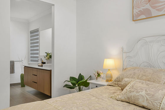 Upon entry, the master bedroom is privately positioned at the front of the home, creating a peaceful retreat complete with a walk-in robe and ensuite. The master bedroom also features a large double-glazed window, enhancing both comfort and energy efficiency. The remaining three bedrooms are generously sized and include built-in robes, all serviced by a central family bathroom. Accessibility has been carefully considered, with easy wide access to the main toilet and a practical swing-accessible shower door.